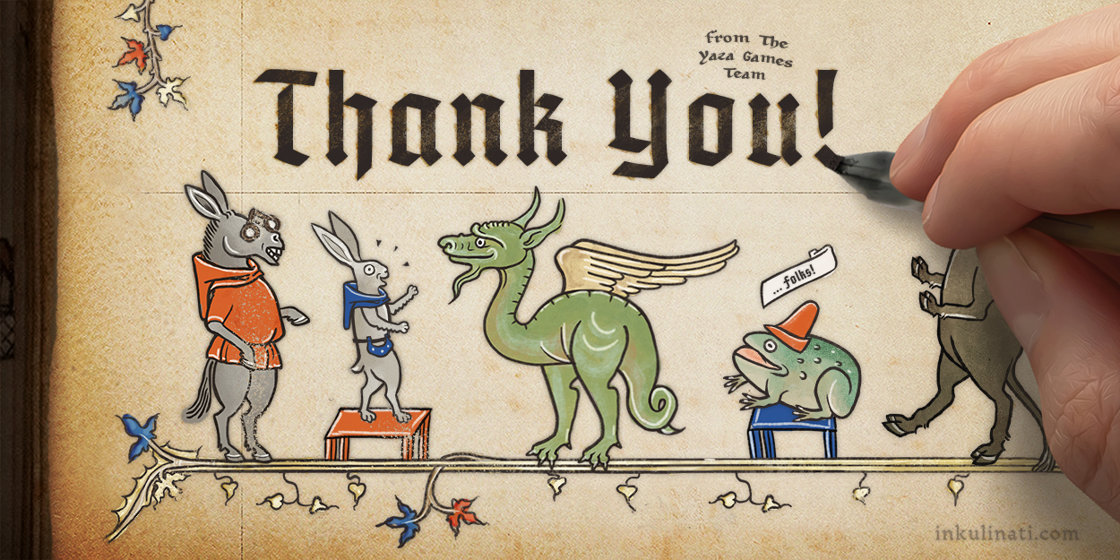 We'll get straight to the point - Inkulinati is now fully funded! And we did this in less than 3 days. This is nuts, crazy, and all the other adjectives that describe states of euphoria and disbelief. So from the bottom of our heart - thank you, thank you, and thank you once again. To all of you. We still can't believe it really happened. You’ve made a bunch of medieval nerds really happy!