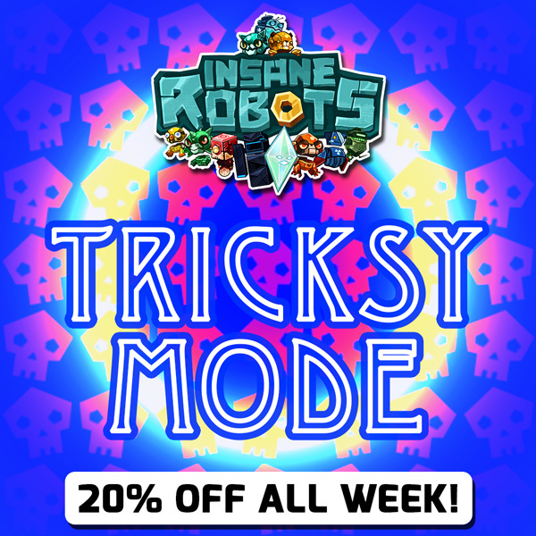 Get Insane Robots and Insane Robots Deluxe Edition, including brand new TRICKSY MODE and ROBO-SLAYER MODE, for 20% off until Oct 1st!