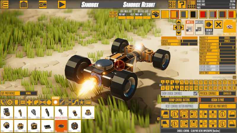 OTHER FIXES Fixed reinforced joints getting double (or more) mass on 1st spawn (fixes most 1st-spawn issues I think) Fixed reflection probes going black far too soon (reflection probe bounds 6x bigger, this is the weird graphical issue if you drove far on Desert Test) Fixed flex arc having terrible collision for build mode Fixed copy-paste (and other functions) on combo wheels Made loading a vehicle remove inputs/outputs for parts that shouldn't have them Fixed letting you assign to an invalid input (for 2-input parts) Fixed mirror-duplicate not aligning flex triangles (and connectors not updating immediately) Fixed direction sensor Motion Direction making no sound Fixed Flex connection drawing still linking to deleted parts