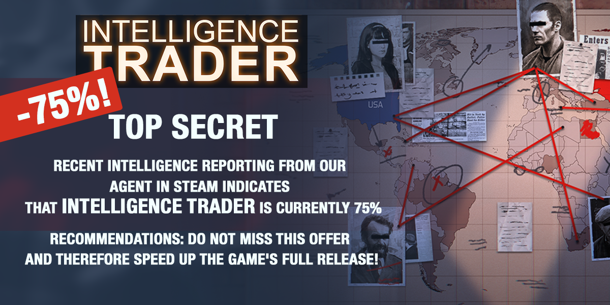 Intelligence Trader is now available in Early Access! Lead a secret intelligence organization, train your agents, gather and sell intels, and see what alternative historical events you can make happen.