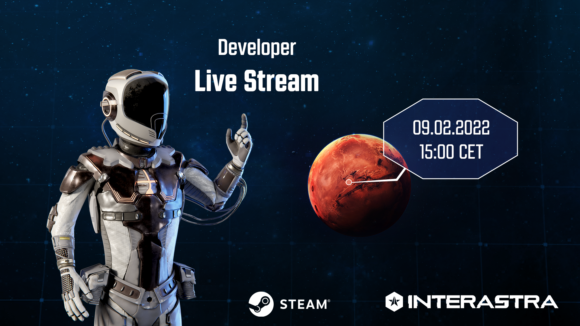 We just wanted to inform you that today is the premiere of INTERASTRA in Steam Early Access. We are delighted to create the biggest game in our portfolio with our hard work. At the same time, we would like to point out that this is early access, and the game will be gradually developed, we will keep you informed about any updates. We hope you enjoy INTERASTRA and welcome your valuable feedback. Don't forget about today's live stream (09.02.2022, 15:00 CET) and about the giveaway, which the results will be announced tomorrow (10.02.2022).
