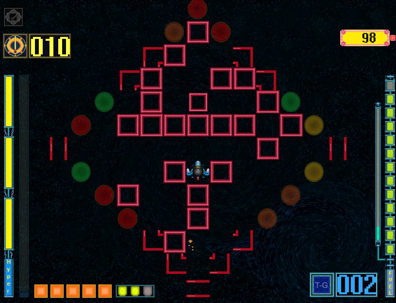 And some extra for a smoother experience: *Added the inventory and the skills menus into the main interface *Added a Golden Gears Metter. *Added an extra indicator to the fuel bar meter. *Being out of fuel, not longer slows down the starship in an extreme way.
