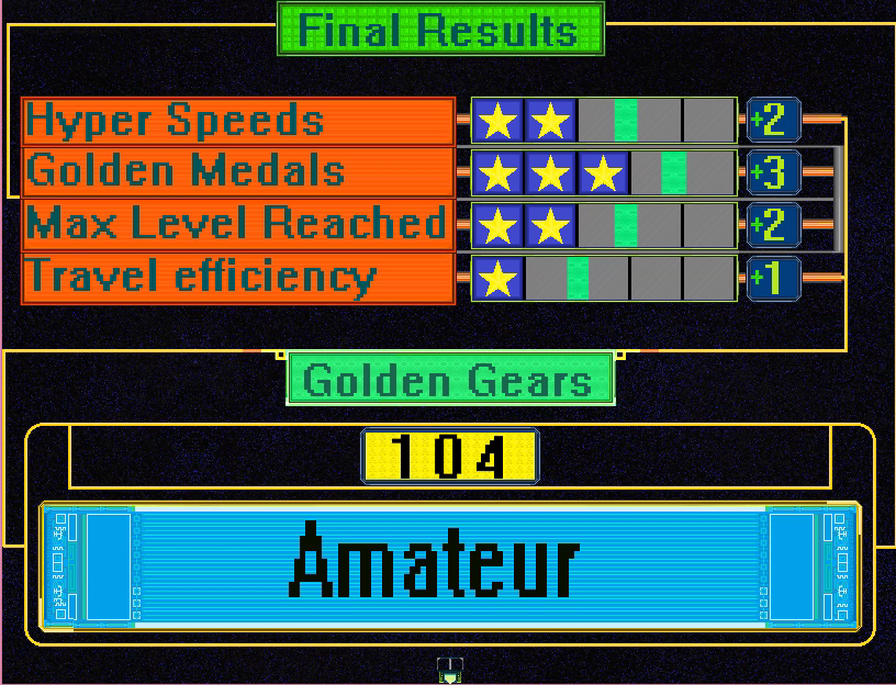 * The game now has a better end game with the Final Result screen (at the end of the game), you will be able to see how good you are, taking into account the number of Hyper Speed and Golden Medals obtained, the maximum fight level of the starship and steps taken.
