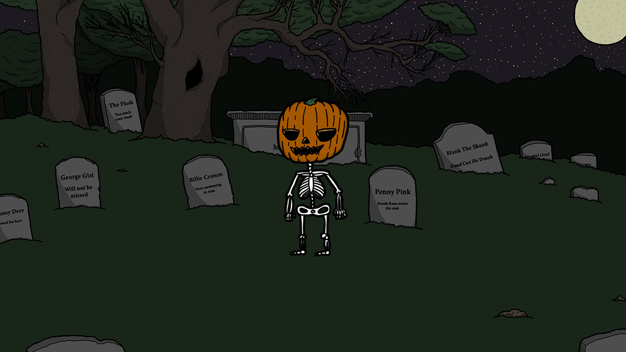 The event adds in six holiday-themed drinks for you to make and a special achievement for crafting all of them. Jack O'Lantern will also be unlocked as a drinking opponent and defeating him will earn you a new skin as well as the graveyard arena. If you can't seem to out-drink him during this period just feel free to reset your computer clock and try again!