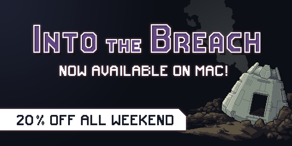 Into the Breach is now available on Mac! To celebrate, the game is 20% off until August 13th for everyone (Windows and Mac).