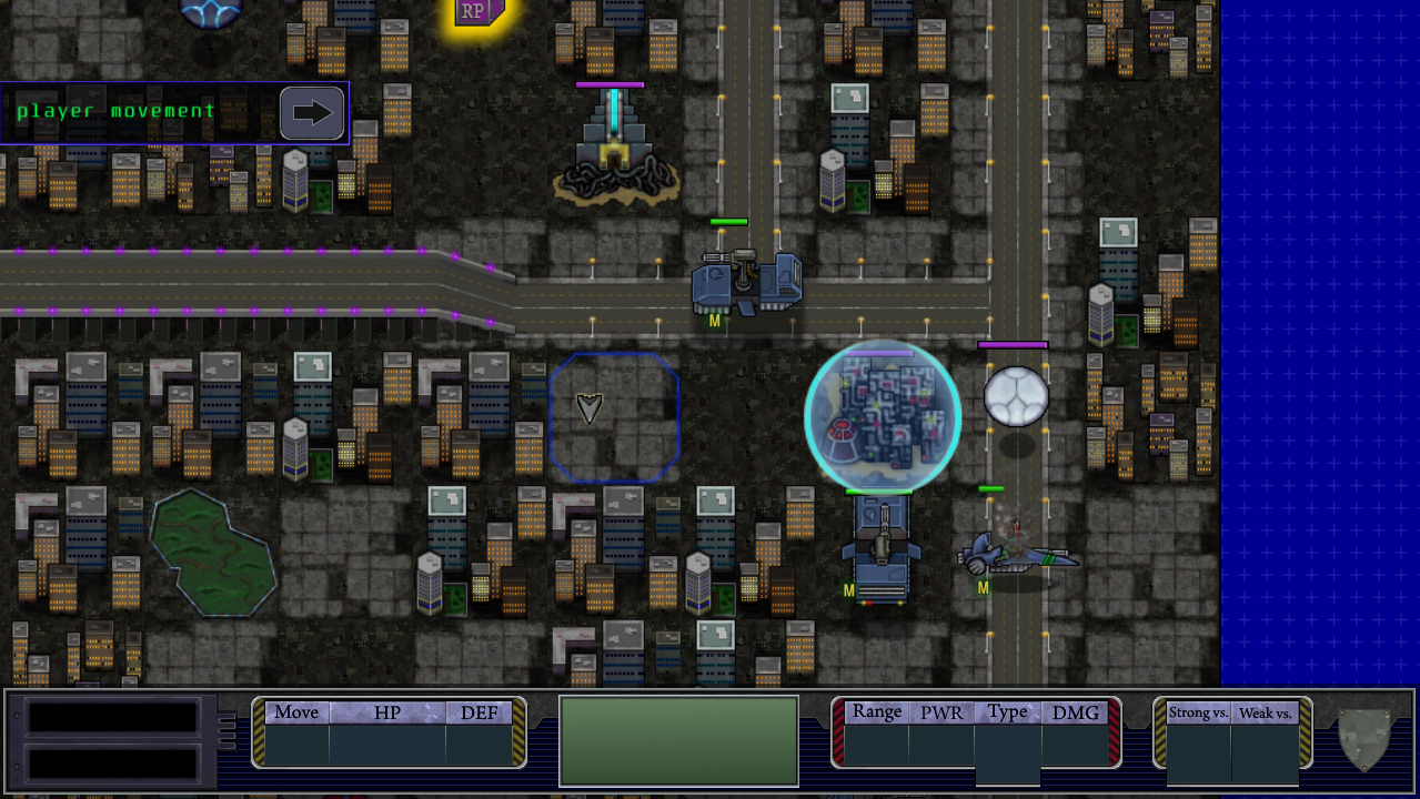 Due to being able to conceal themselves easier than vehicles, Infantry-type units now get a +2 DEF bonus for moving to a square with terrain that provides cover such as forests, hills, fields of cacti, craters etc. Doing so displays a shield icon above the unit sprite and in the UI bar. Naturally enemies can now do the same.