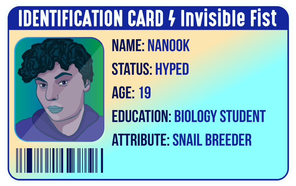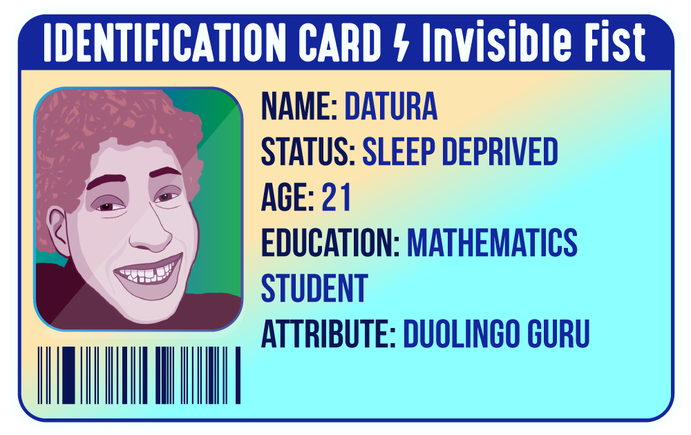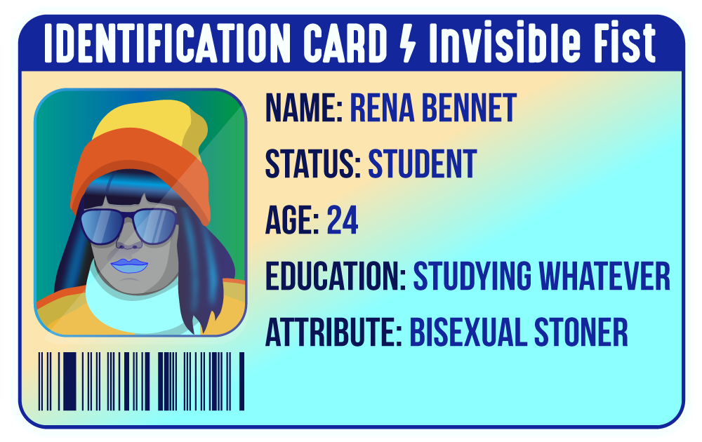 2) Send us your photo and a short description (as in the example of one of our games characters, Rena) and we will choose one and magically create YOUR OWN ID CARD (with the hands of our unpaid interns).