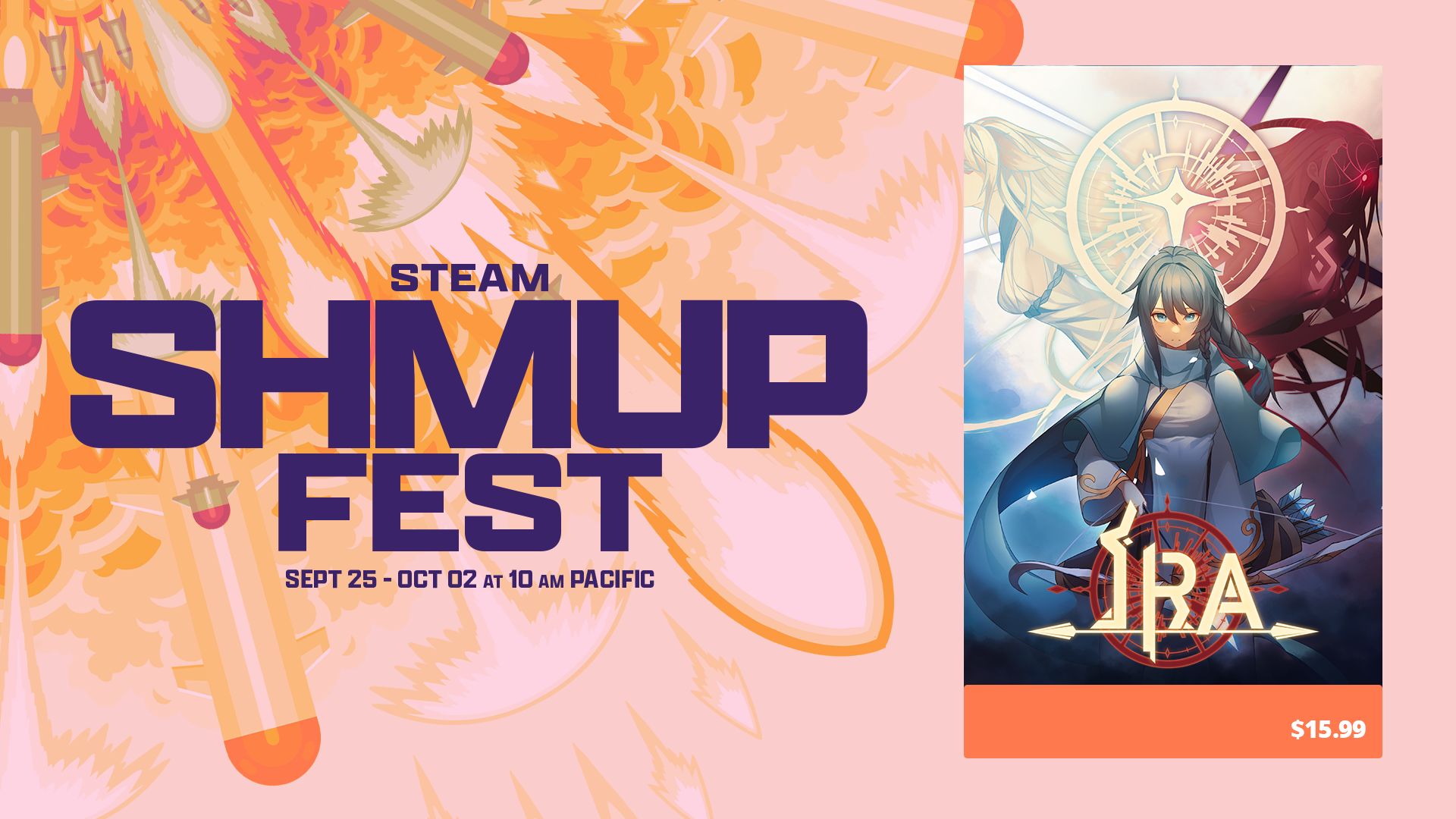 With our release date of October 3 coming closer, we would like to announce that Ira is participating in Steam SHMUP Fest until October 2 at 10:00 AM PDT (UTC-7)!