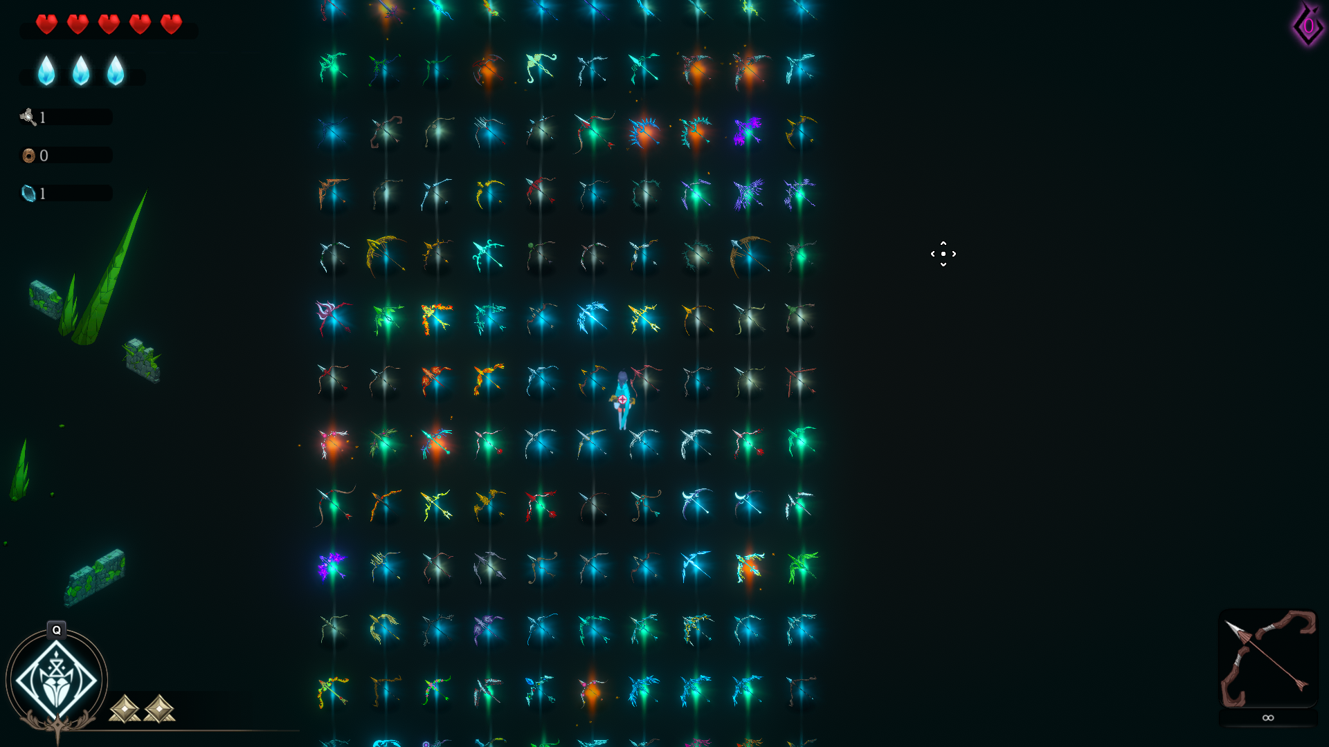 Because Ira is a game that celebrates the beauty of “bullet hell,” we wanted to show you some of the 160+ weapons that can be obtained. Here are three of them: