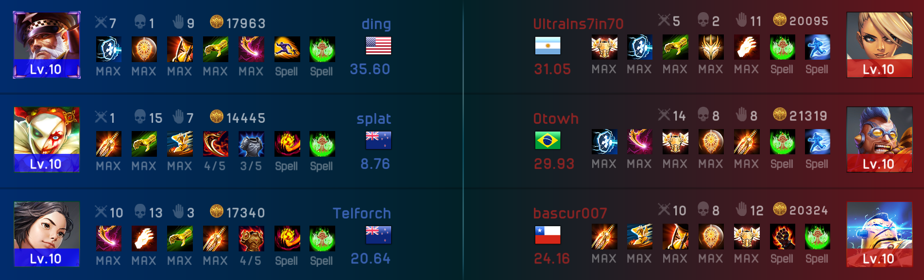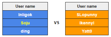 *Nicknames of those who uploaded their replays are colored in yellow.