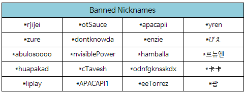 *Nicknames of those who uploaded their replays are colored in yellow.