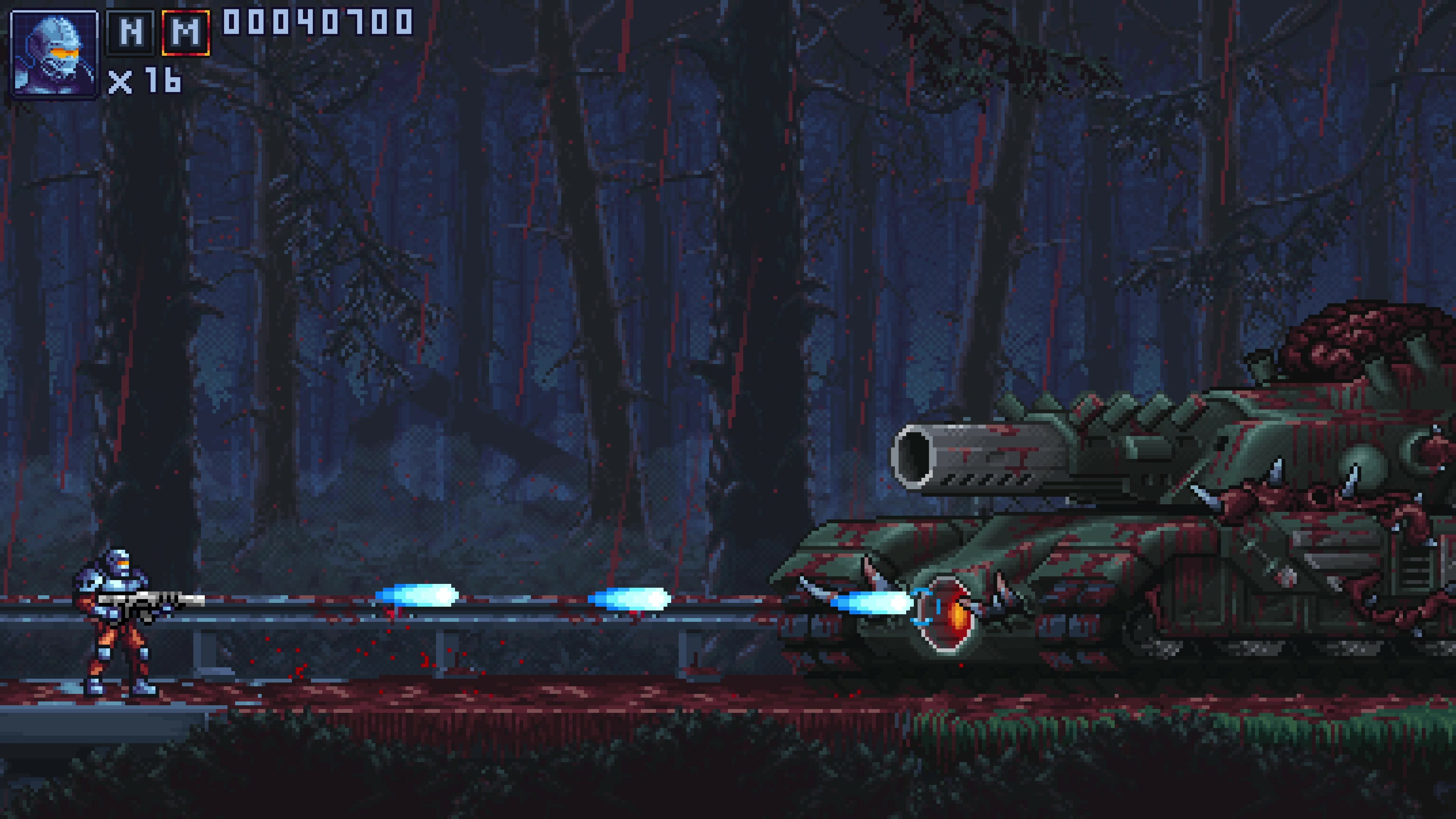 A former Earth Counter Invasion Force tank infected with the Meat appears at the end of the Forest zone! Armed with a Meatball launcher, dual radiation cannons, and toxic bubbles, the Tank boss is a terrifying menace that must be eliminated!