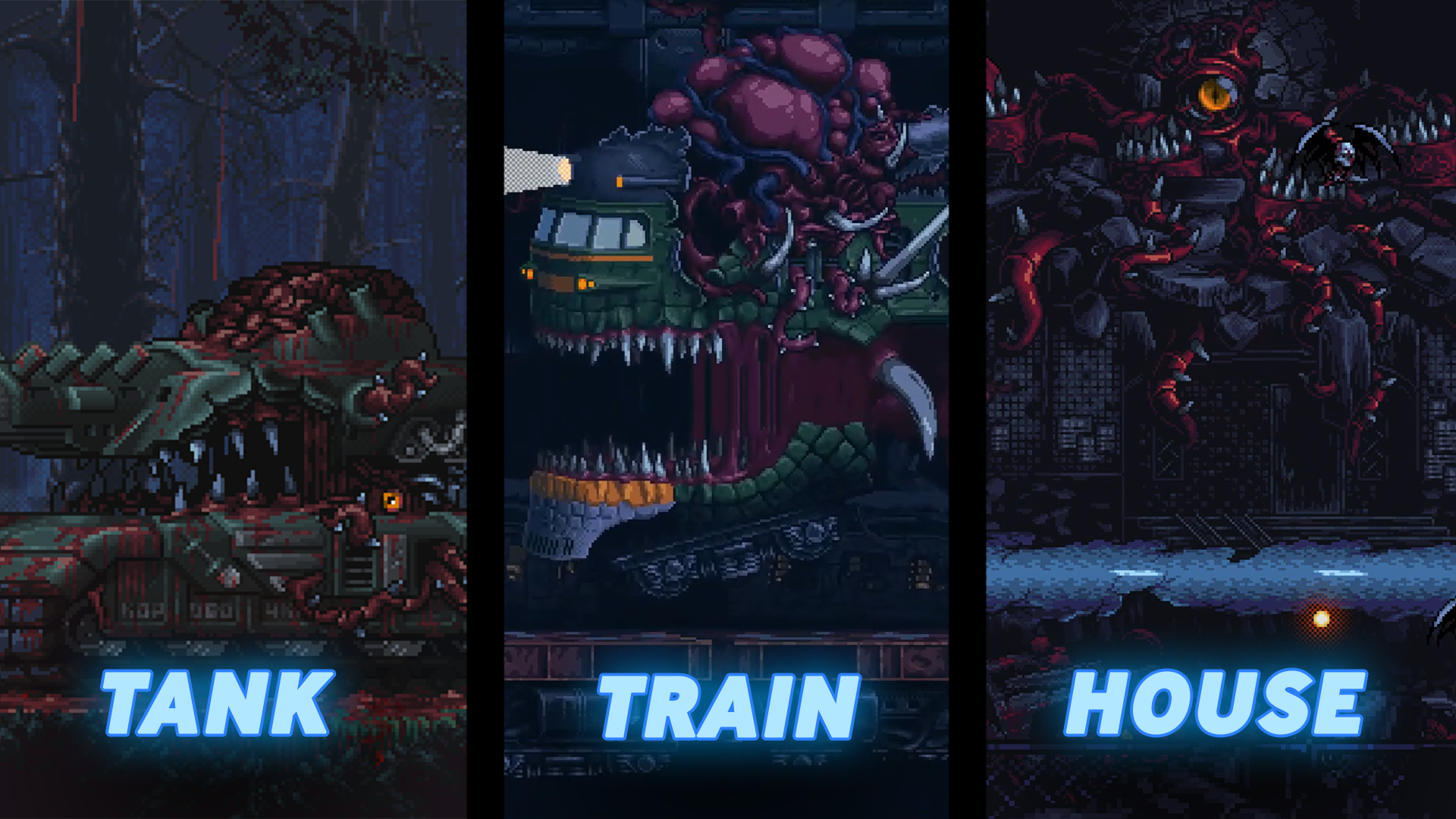 Not a fan of the Tank, the Train, or the House? That’s OK! Take on each of the three bosses RIGHT NOW in the Iron Meat demo!