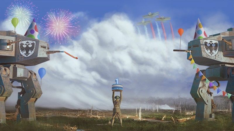 Enjoy the exciting days of celebration and pour a glass of your best spirit - because today Iron Order 1919 celebrates its first birthday! The last 12 months have been a great challenge and at the same time, they brought us our favorite game as we know it today - full of diverse, inventive units, alternate history maps, and its very own unique atmosphere. Our mechs won't stop rattling all day today and next week you will get something special: event maps for the entire week and a chance to win 100,000 Gold and 3 months of Premium Account!