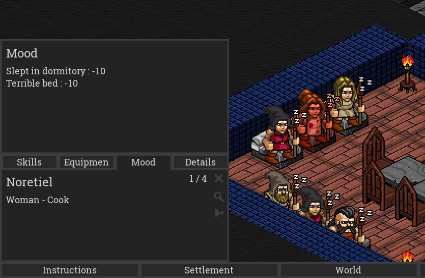 Colonists will now also get a mood based on their living conditions. So for example humans (which are the only playable race right now) like living in private rooms that are 2 blocks+ tall with a bed, some furniture and a light source. You can see the mood effects in a colonist's mood menu and adapt their living conditions accordingly