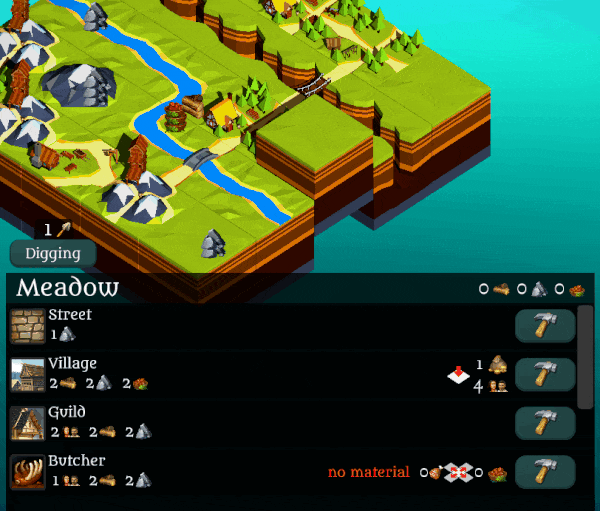 The player is now reminded when resources are missing to build a building. Especially with villages there was a lot of confusion.