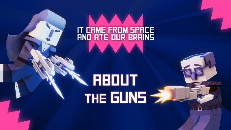 It came from space and ate our brains is a unique arcade top-down shooter that will require you to shoot with guns. But they are not just some ordinary guns, oh no! Those are guns to kill aliens, the guns designed especially to kill aliens, alien-slaying guns. That kind of guns.