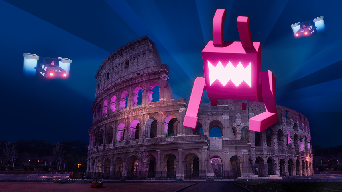 This is Helen Replay, speaking to you from Rome! The Colosseum is destroyed. I repeat, the Colosseum is destroyed. 50,000 people fled the building and it is currently unknown whether the Gladiator Contest tickets will be refunded. WTF, Winged Team Forces, are scattered over the city, trying to save the citizens and reduce casualties. What does these aliens look like up close? Like a sci-fi prop made of cardboard of rage!