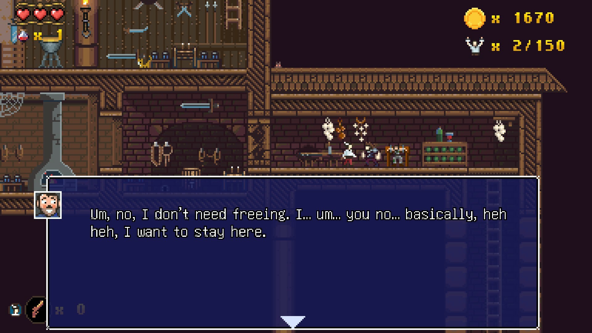 Teamwork makes the dream work. While testing the game, Krzysiek, the producer, pointed out something I didn’t think was possible - you could complete the game without ever buying the shield. I just assumed every player would grab it. To fix that, we came up with the Prison Cook NPC.