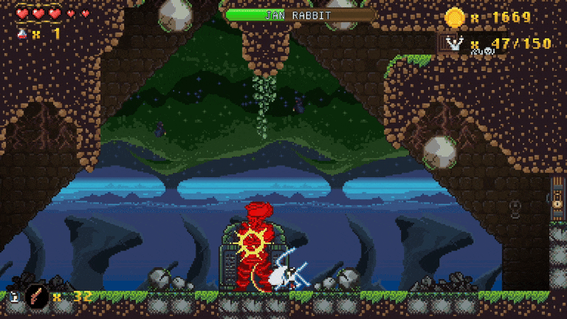 A maniac in a rabbit mask. A giant at least 10 feet tall, mumbling something about sacrificing all the time. He’s a very powerful enemy that you’ll meet later in the game. Jan Rabbit has different types of attacks, like throwing hammers, causing huge stones to fall from the sky, and… well, you’ll see. We don’t want to spoil it for you.