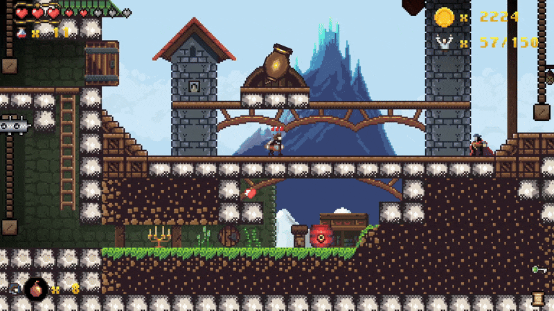 Janosik 2’s visuals are a love letter to classic games, combining retro pixel art with fresh animation techniques. The game’s sprites and backgrounds were drawn by hand, one pixel at a time in Aseprite. To keep the vibe of old-school platformer, Marcin used a limited color palette and focused on clean, and readable designs. The final pixel-art is simple, yet vibrant and expressive, mixing modern animations with retro charm.
