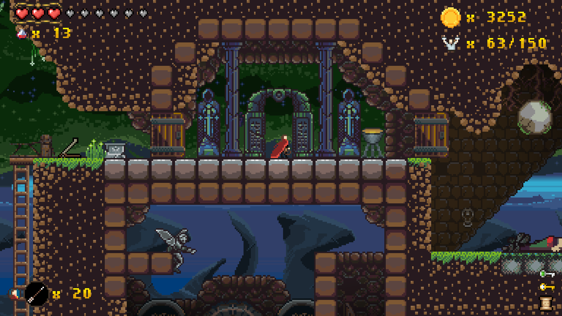 You will encounter various characters on your journey. Some of them inhabit a nearby village you can visit, while others can be encountered around the levels. There is a clear distinction between them. The characters you meet outside of the village will offer you items necessary to progress further. Some of them include: