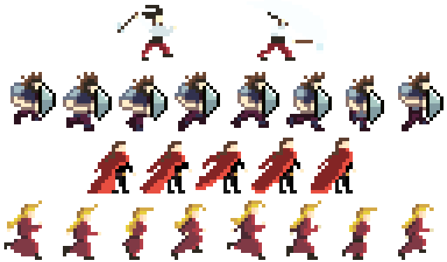 All cinematic sequences in Janosik 2 were created using the rotoscoping technique. This process involved recording short video clips of desired animation sequences, which were later redrawn frame-by-frame in Aseprite. Every movement - from running and weapons swings, to more complex gestures - was first recorded to make the animations as precise as possible. By doing so, Marcin was able to achieve smooth and lifelike animations, which are hard to achieve while drawing pixel art. It’s a bit like creating a flipbook, but with each pixel carefully placed in the sequence.