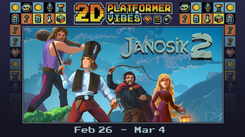 We’re excited to share that Janosik 2 is a part of 2D Platformer Vibes online event hosted by Retrovibe! The event is held from February 26 to March 4 and it gathers an amazing roster of 2D platformer titles developed by talented teams from various parts of the world.