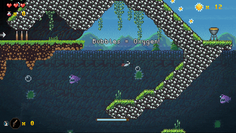 Underwater exploration will not be easy, as you will encounter various obstacles, menacing creatures, and need to manage the oxygen supply. Collect air bubbles floating nearby to make sure you can reach the surface safely or take a risk diving deeper to grab precious trinkets.