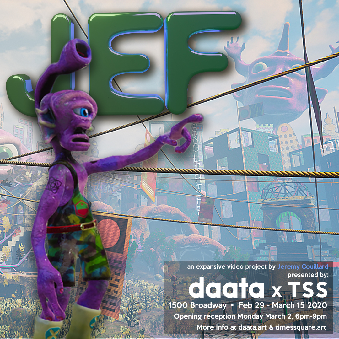 The day after JEF releases on Steam there will be an pop up exhibition for a few weeks right in the middle of Times Square, New York, in an abandoned, gutted out retail space at 1500 Broadway. ------------------------------------------------- Daata x TSS presents JEF: An expansive video project by Jeremy Couillard at Times Square Space, 1500 Broadway, NY 10036, Ground Floor Entrance, next door to the Brooklyn Diner, 155 West 43rd St