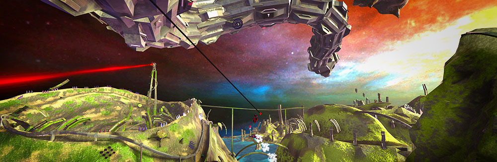 In addition to the new boss battles, players now can upgrade their stats. Drones are placed throughout the world, waiting in towers marked with a red beam. Defeat them to get crystals that update your stats. This allows the gameplay to be well balanced at the same time as giving the player the ability to max out their stats and really push the limits of the speed that is possible with the game's unique physics system.
