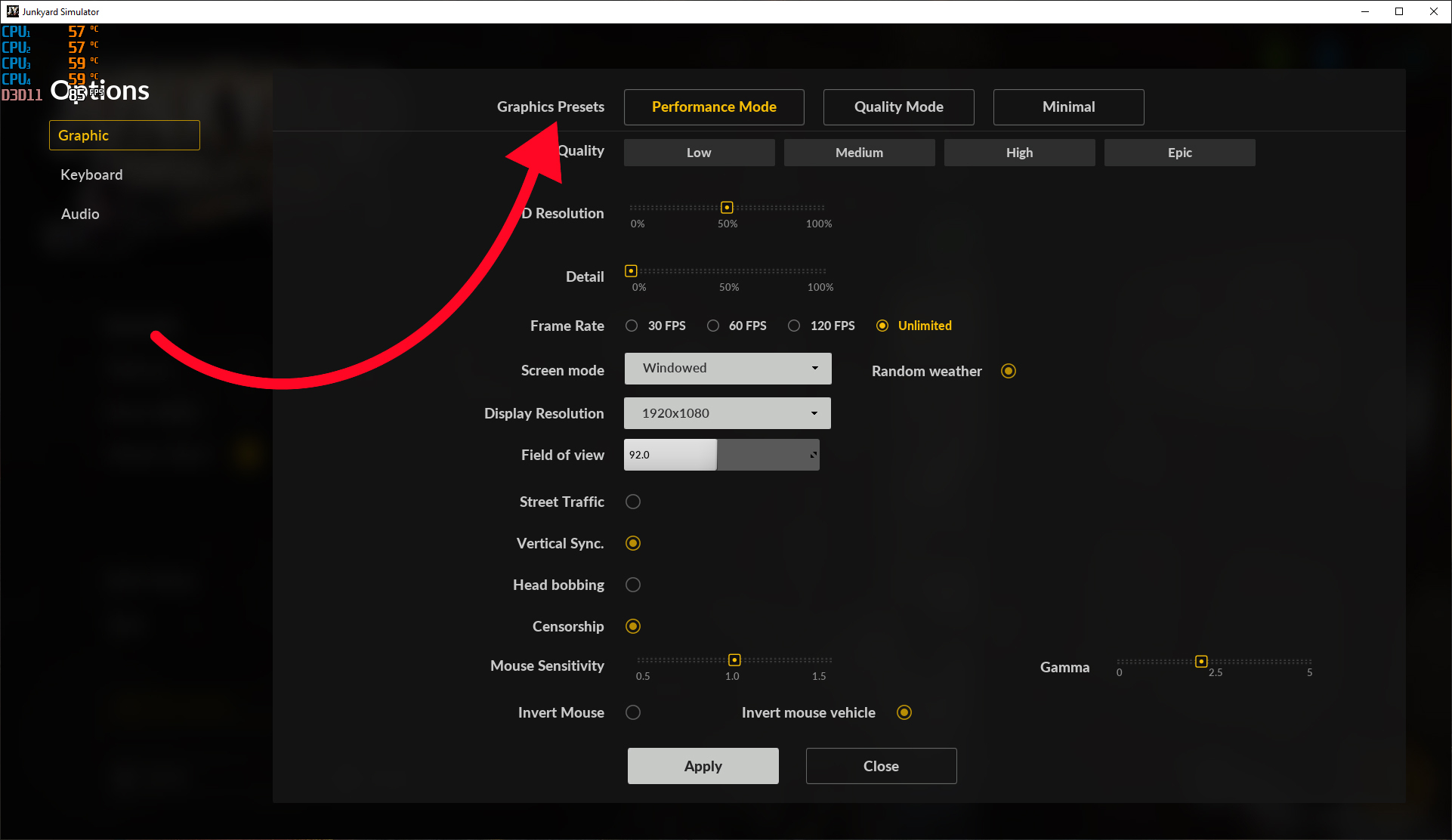 After disabling random weather in the PERFORMANCE preset, the checkbox remained enabled despite being turned off