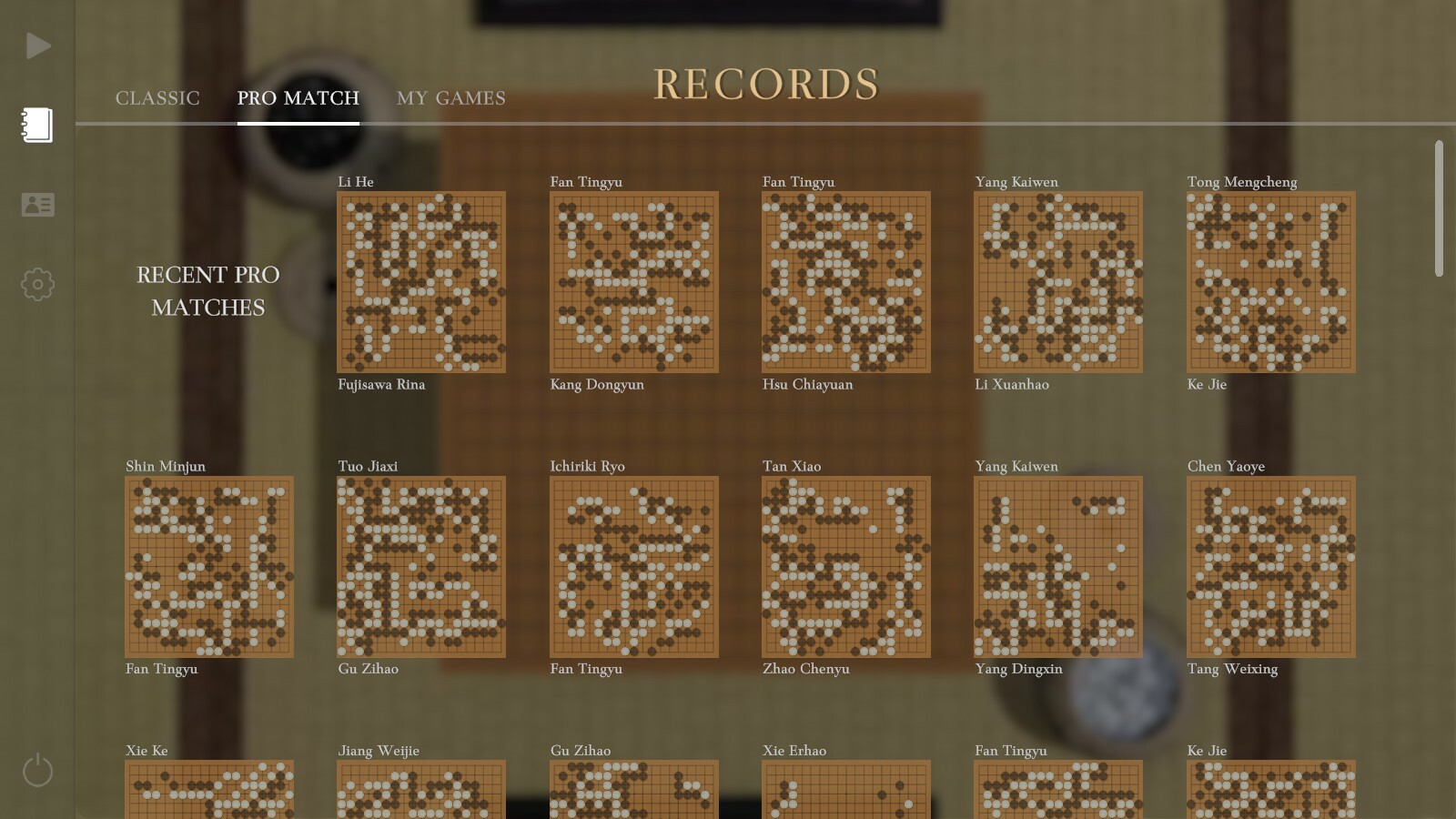 Recent professional matches have been added and will be updated in real time (integrated with gokifu.com)