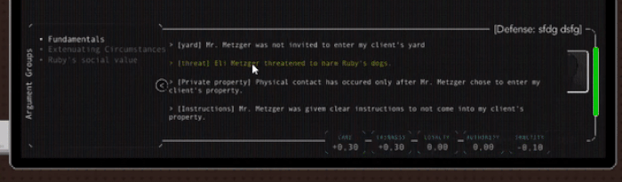 We have updated the demo with the new courtroom system. You might have seen the moral pentagons that imply the moral perception of jurors and moral impact of arguments. They are now implemented in demo. So, you can do more jury manipulation with less number tracking.