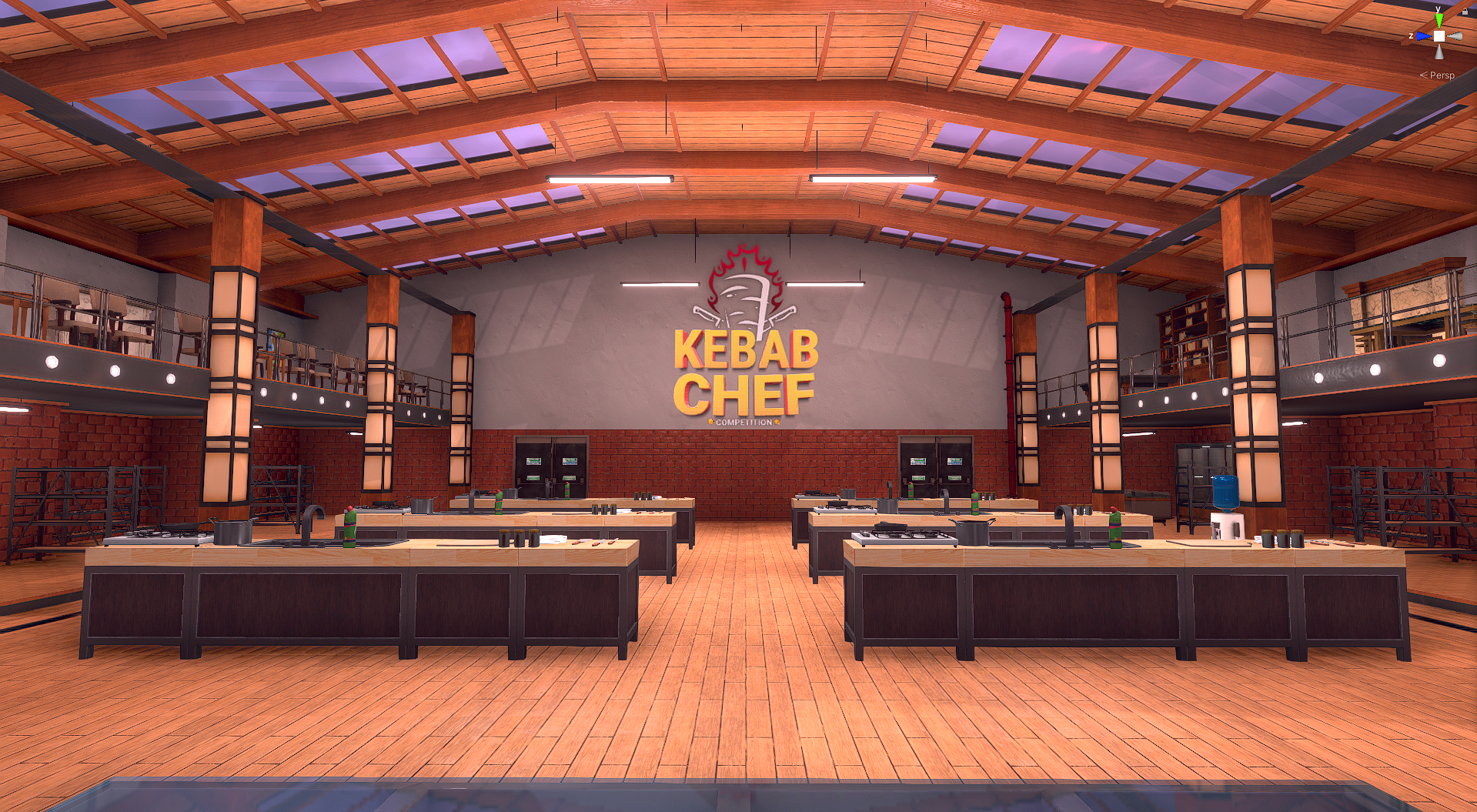 Here is our new map for our brand new game mode, Kebab Studios! As you can notice, this new game mode will be about competition instead of cooperation. This time, there is no teamwork. There is conspirancy now! So that means you will try to beat other players via making the best dish you can ever make in a limited time. But also watch out for those who would sabotage your kitchen!