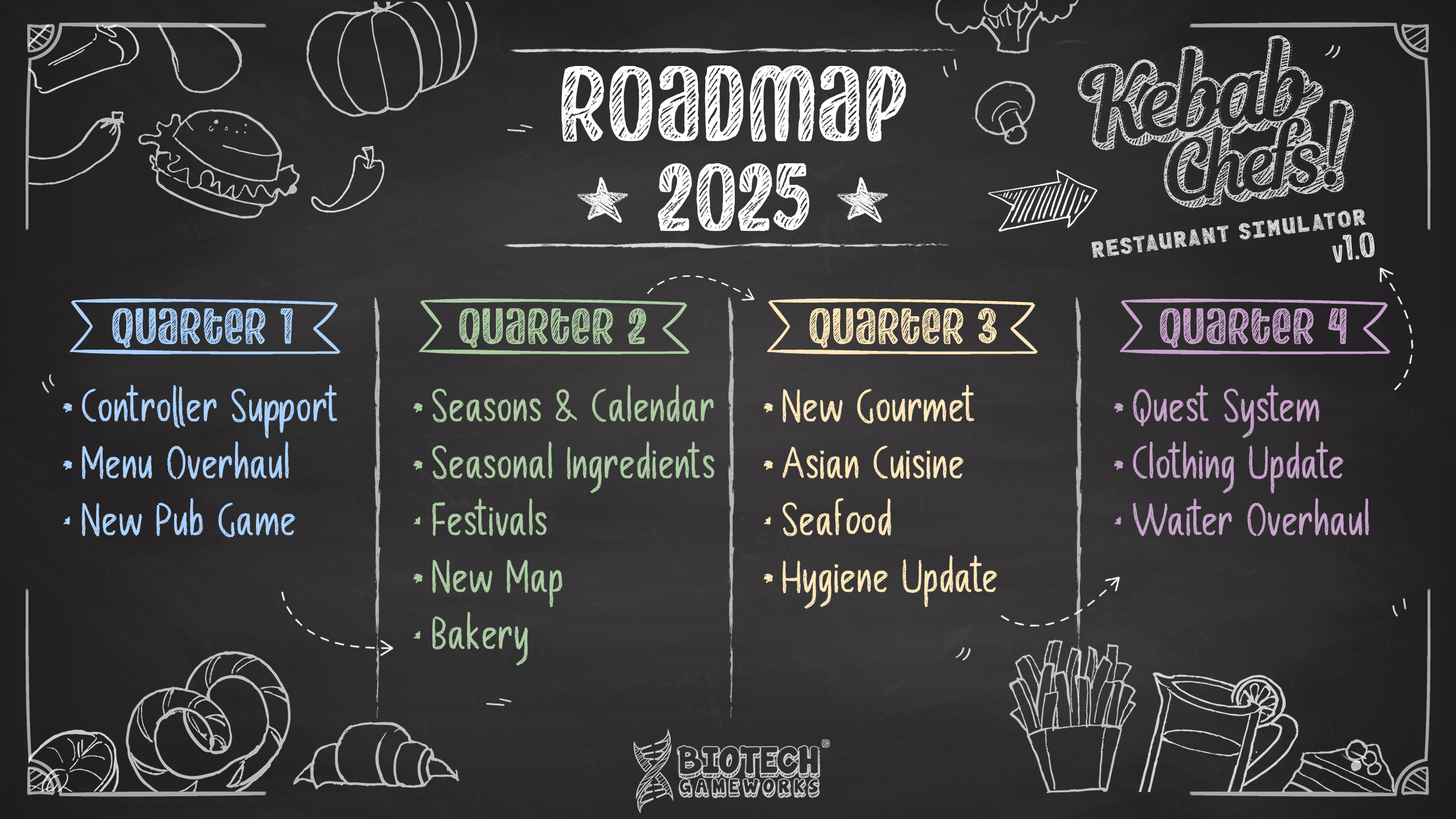 As you may realized, it's almost one year since the early access release of Kebab Chefs! As we are getting closer to the anniversary, we are preparing a new roadmap for 2025!