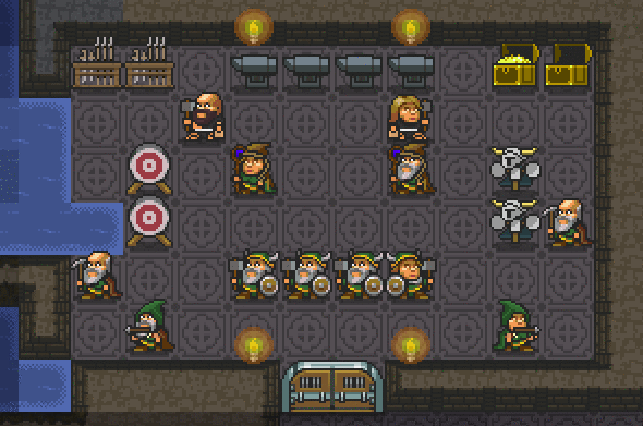 Something that has been suggested by players, is the idea of arrowslits. In KeeperRL it is a special wall tile, which creatures with the attribute of “arrowslit vision” can see and shoot through. It’s a human equivalent of “elf vision” (which you may have fallen victim to if you were ever shot by elves through the trees). It will be available to the white knight faction as well as AI villains. Expect more unexpected arrows flying in your direction