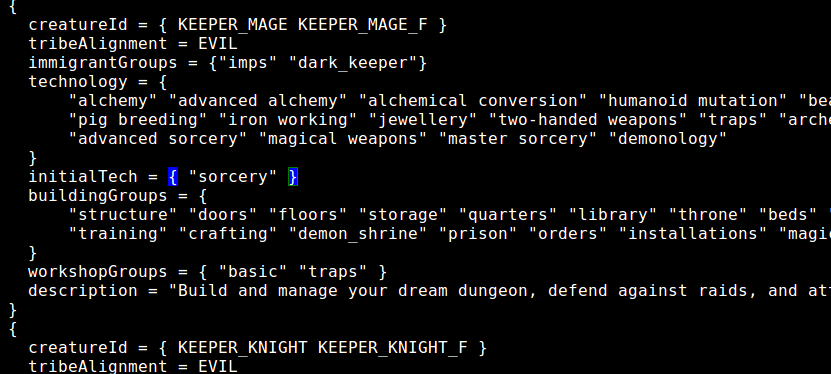 KeeperRL has always had all its data defined in the source code, which is not a great design - it slows down development and doesn't allow any modifications without recompiling the code. On the other hand, moving data into text files requires quite a bit of effort, like writing a parser and reorganizing a lot of code, which is why I kept putting it off.