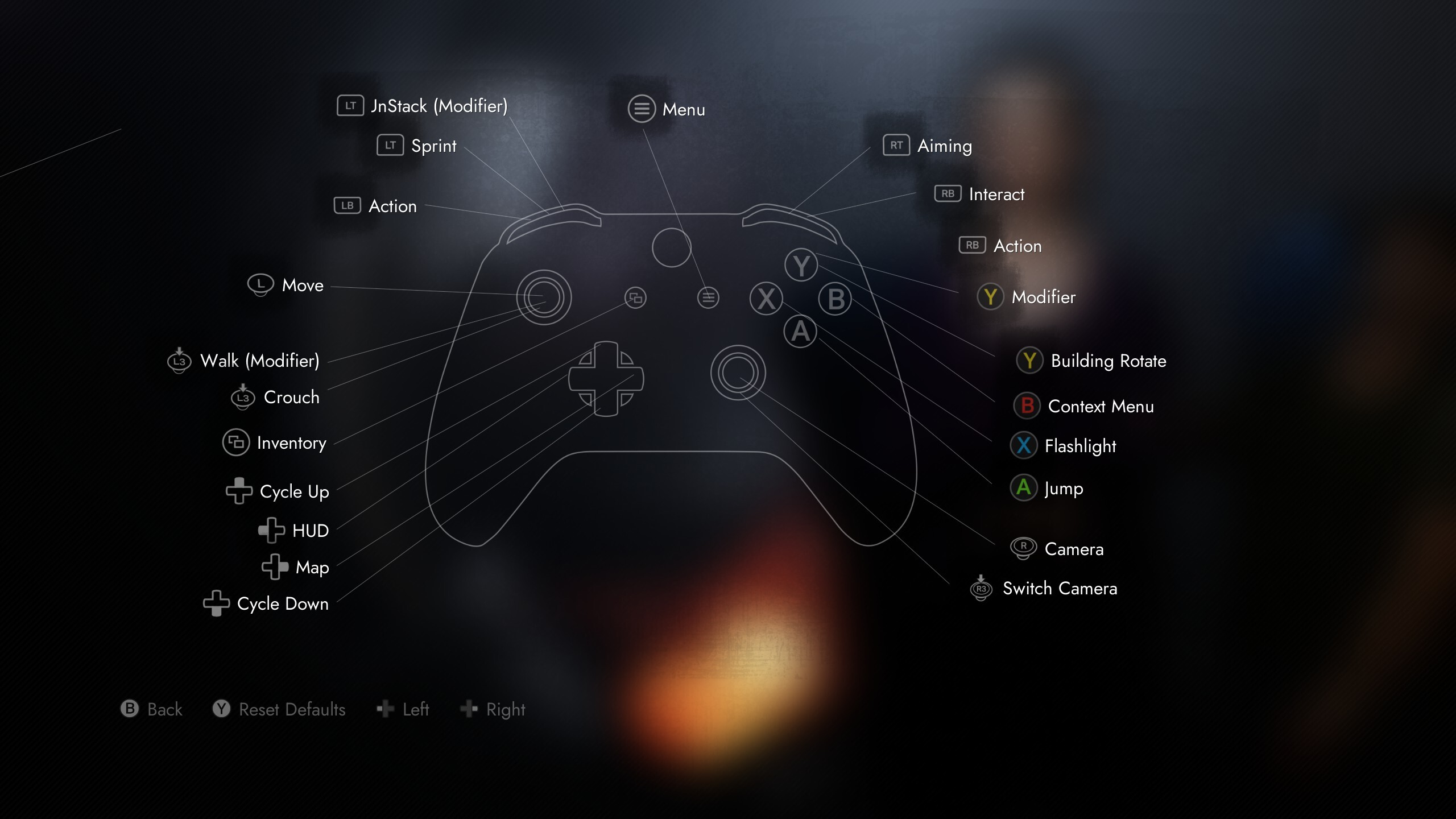 The controller button mappings are displayed in the HUD, partially for the most commonly used inputs under Settings -> Inputs.