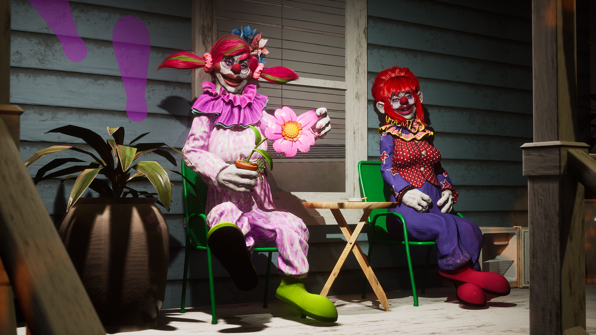 Head over to the Killer Klowns From Outer Space: The Game Twitter to get a FREE code for the blue and red Studded Jacket tints!