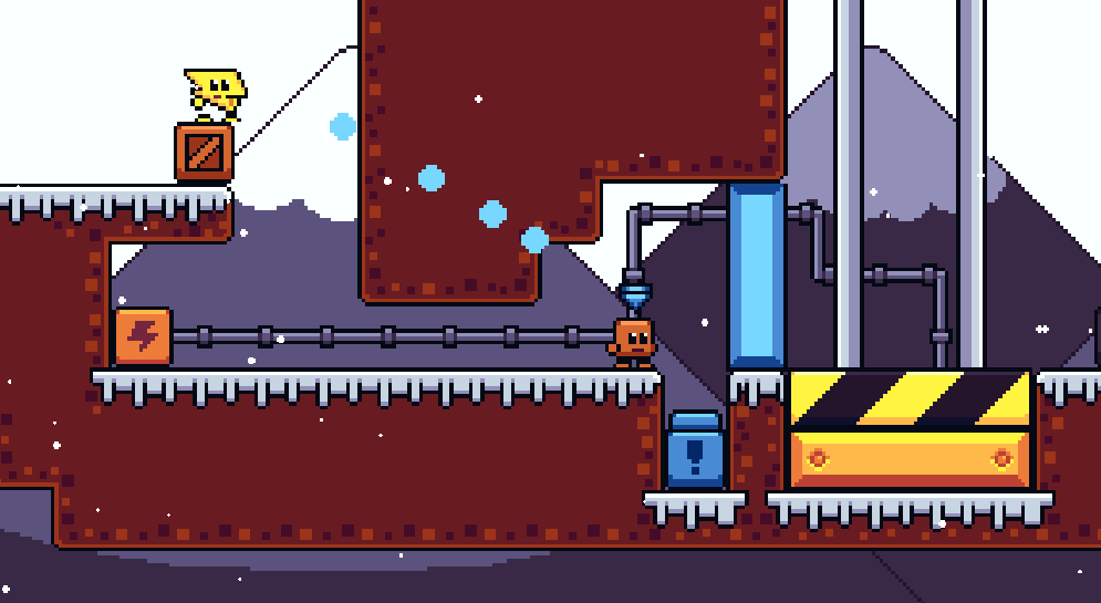 Corrections - Color correction in the elevator art. - Fixed cloud bug in phase 10, which didn't move. - Fixed the bug where the Stone when pushing the box, kept changing animations. - Fixed the bug when the rock pushes the box and when it fell against the electric, it accidentally killed it.