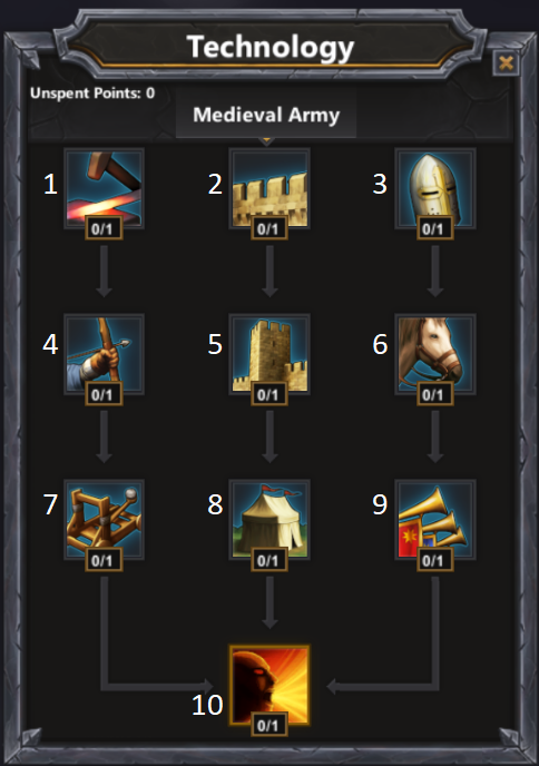 6. Breed for War Increase the HP of Knights by 200 and damage by 10.