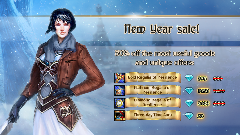 But merchants prepared one more surprise for you โ three-day Time Aura on the shelves! Find it in the Royal Shop during the sale at a fair price โ just 28 Crystals!