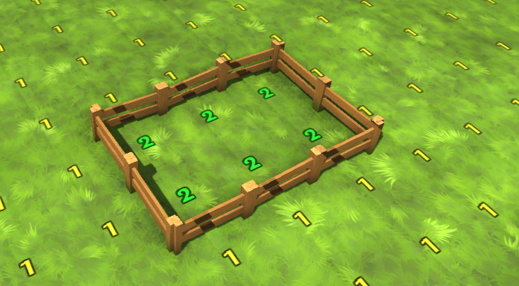 - Fences could be allowed to go alongside house border later on, but likely it ’s not needed - How to build fenced area for cattle?