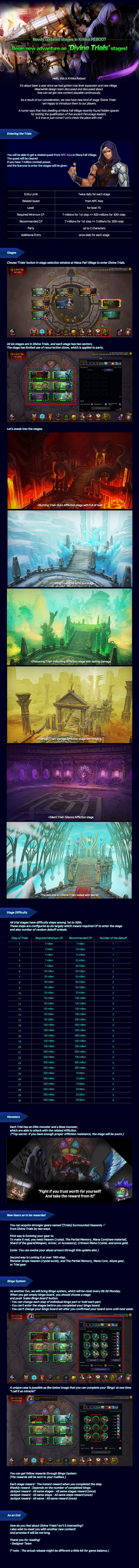 Through this update, new Divine Trials stages, new gears related to, new K-Pass season and etc will be updated.