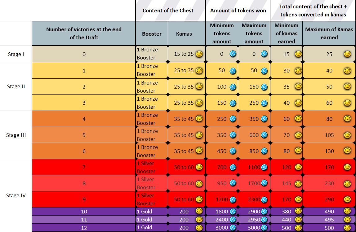 Here is a table showing you what you can win in Draft mode, with “classic” wins (i.e. without “All In”).
