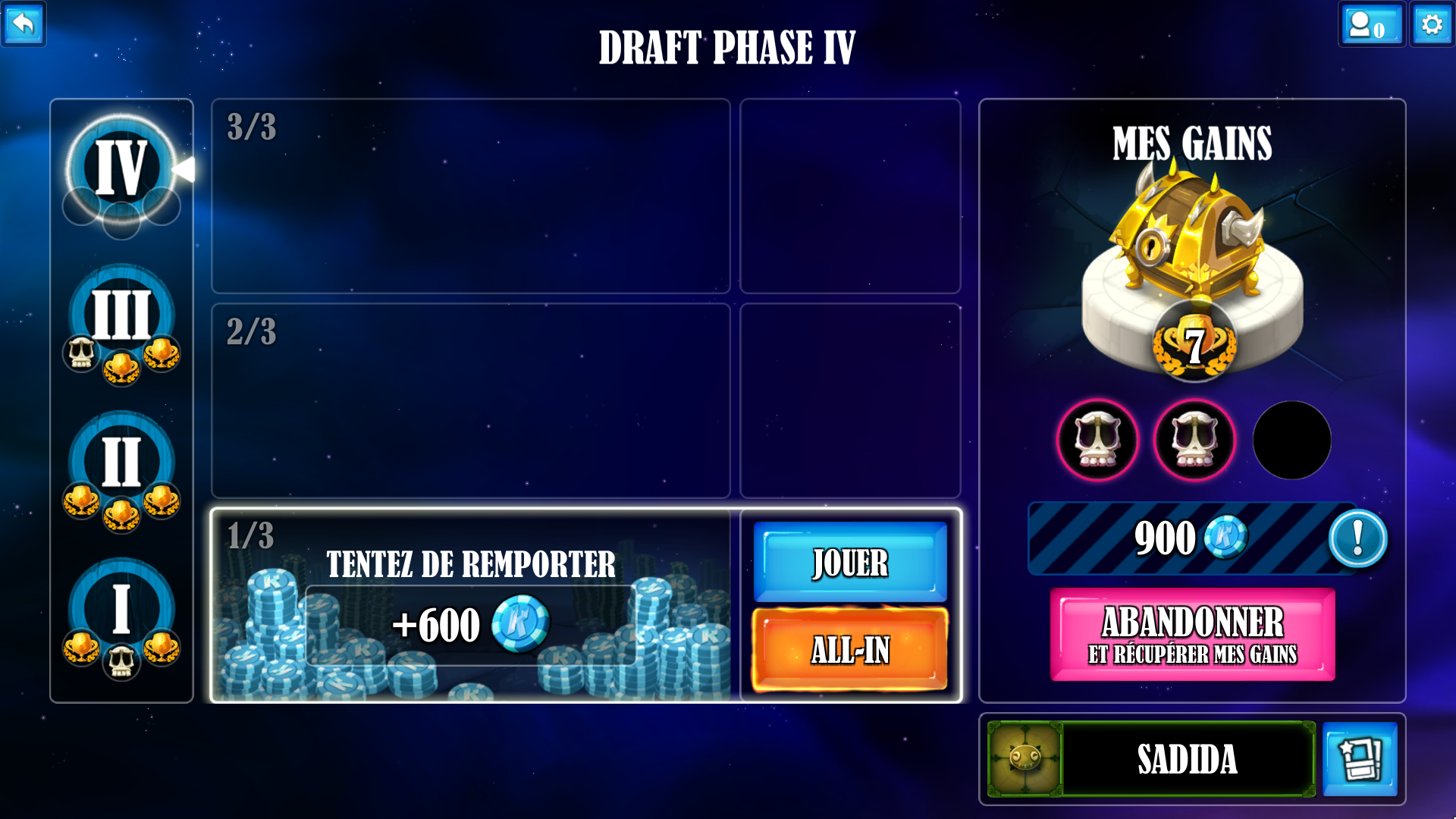 You’ll need a savvy mix of luck and technical skill. Draft mode can win you up to 2,000 Kamas and 1 Gold Pack! But careful not to get too carried away with the “All In”, which can truly go either way...