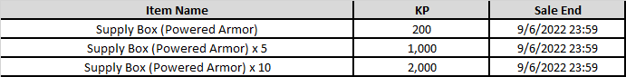 August 3rd, 2022 KP Shop Item Update