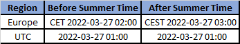 Please see below for the Summer Time start time for the Europe Server. There will be no maintenance but please note that the service could be unstable during the below time.