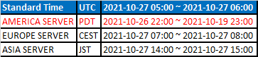 October 27th 2021 Weekly Maintenance Schedule & Patch Notes